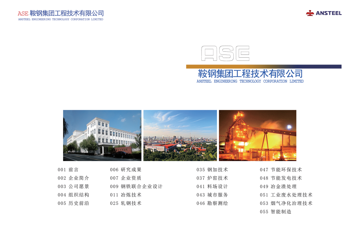 鞍鋼集團(tuán)工程技術(shù)有限公司(ASE)地處國家AAAAA級風(fēng)景名勝區(qū)—千山腳下,是原鞍鋼集團(tuán)設(shè)計(jì)研究院改制的國有控股混合所有制企業(yè),至今已有60多年的發(fā)展歷史,被譽(yù)為“中國冶金設(shè)計(jì)隊(duì)伍的搖籃”,公司注冊資本6.49億元。具有工程設(shè)計(jì)、工程咨詢、勘察測繪等8項(xiàng)國家甲級資質(zhì)和總承包資格,連續(xù)多年被遼寧省認(rèn)定為高新技術(shù)企業(yè),是國家“雙百行動”和“混改”雙試點(diǎn)企業(yè),是全國勘察設(shè)計(jì)行業(yè)百強(qiáng)企業(yè),2021年排名位列第81名,入選國企混改典型案例,位居前列。